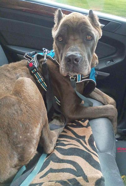 UPDATE Oct 19th 2025: We have her lab results back. Amazingly she is heartworm negative, all organ functions look good and other than a little anemia and intestinal parasites, she is doing well. She is eating good and starting to put on a little weight. Oct 13th 2025: We received a notification that Nash Co had an emergency neglect situation. Welcome Evie as our newest member to the rescue. She is on her way to our vet to spend some time to make sure she stays stableClick here for information about the Great Dane breed